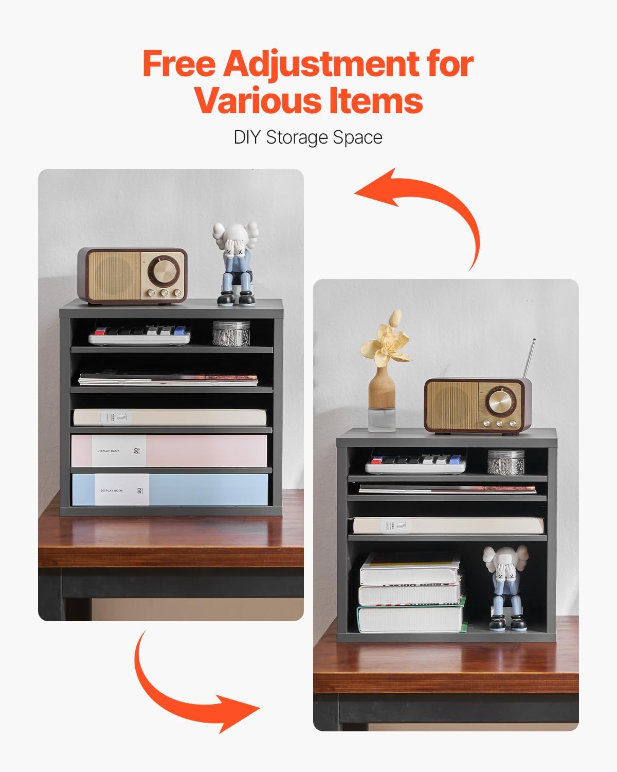 VEVOR Literature Organizer, 5 Compartments Office Mailbox with Adjustable Shelves, Wooden Mailbox Sorter Medium Density Fiberboard Office Home Classroom Storage for Files, Documents, Papers, Grey