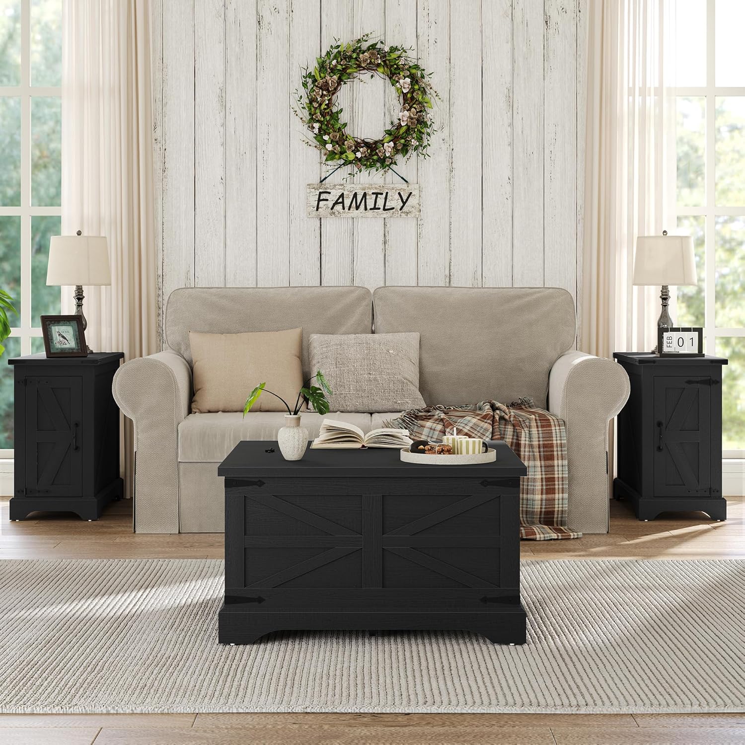 - The square coffee table classic farm barndoor make it a versatile addition to any living room. Whether you're entertaining guests or enjoying a quiet evening, it provides ample surface space for your needs without overwhelming the room