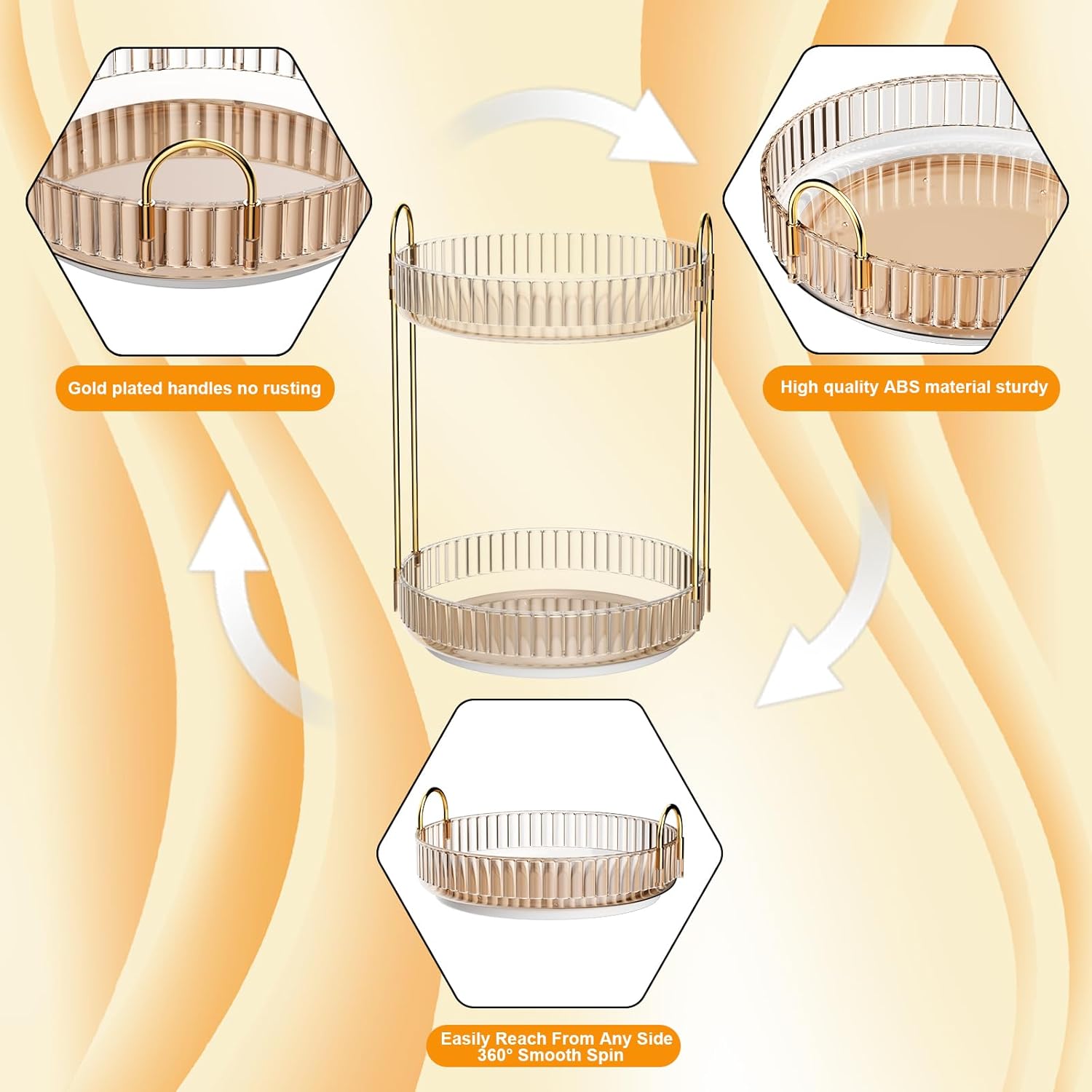 GTI 360°Rotating Makeup Organizer, 2 Tier Bathroom Counter Organizer,Large Capacity Perfume Cosmetics Skincare Vanity Organizers, Dresser Spinning Countertop Organizer and Storage for Women (Gold)