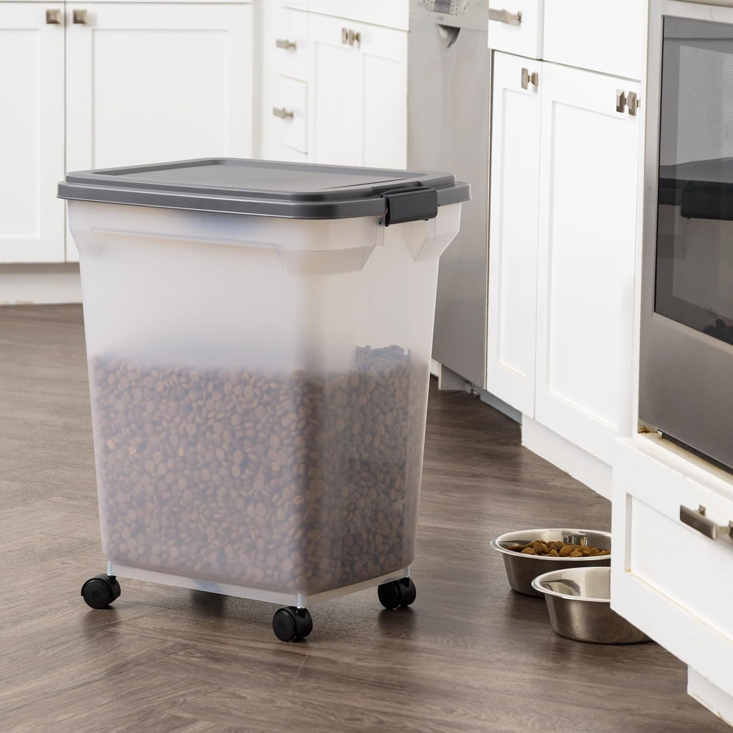 IRIS USA Dog Food Storage Container 58 lbs, Attachable Wheels, & Included Scoop, for Dog Cat Birds and other Pets, Food Storage Bin, Keep Fresh, Easy Mobility, BPA Free - Made in the USA, Dark Gray