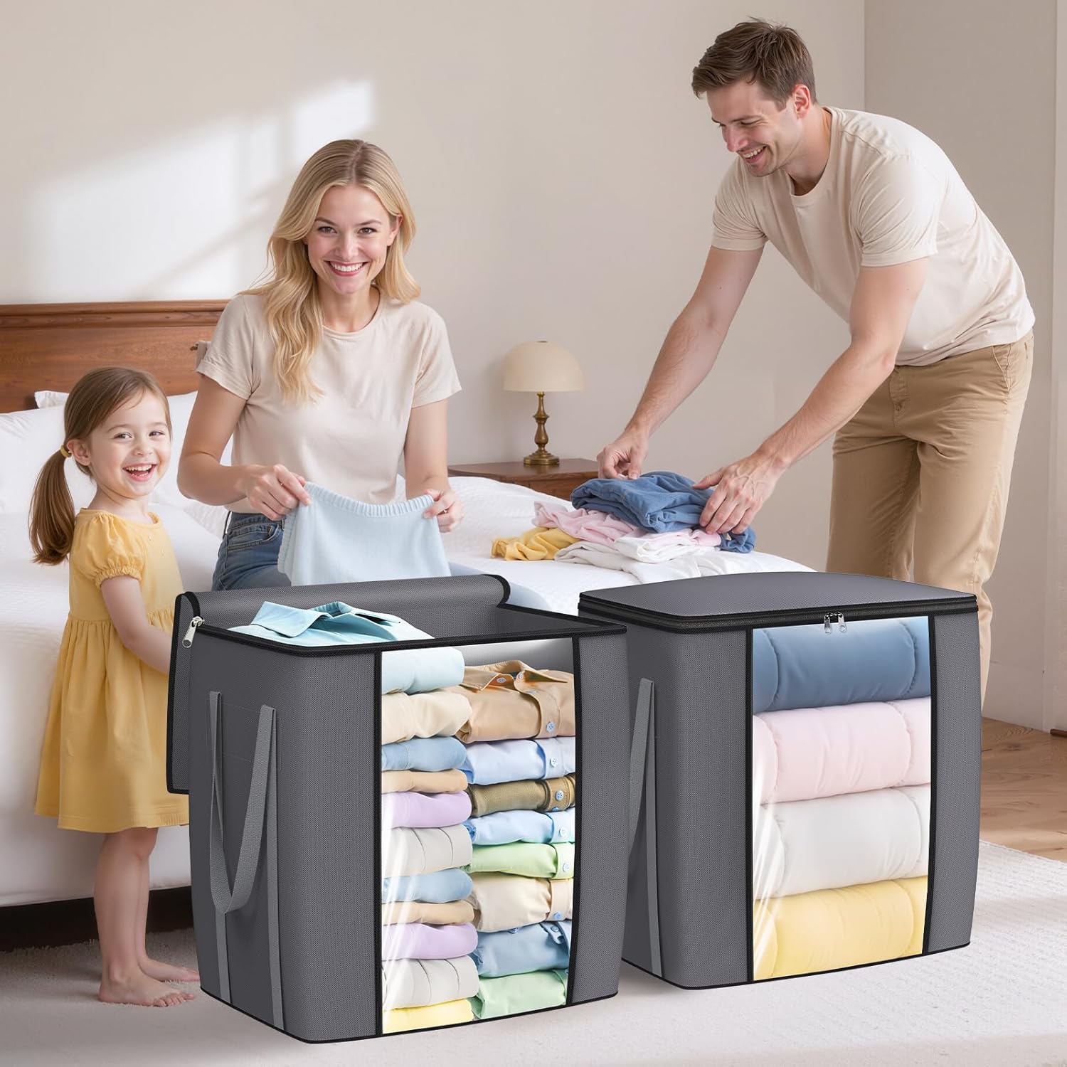 - Foldable Design & Multi-Occasion Use: The comforter storage and organization can be easily folded flat to save space when not in use and stacked when full. Ideal for bedroom, closet, dormitory, attic, or basement storage. Help keep your home tidy and organized, or use as a practical helper for moving