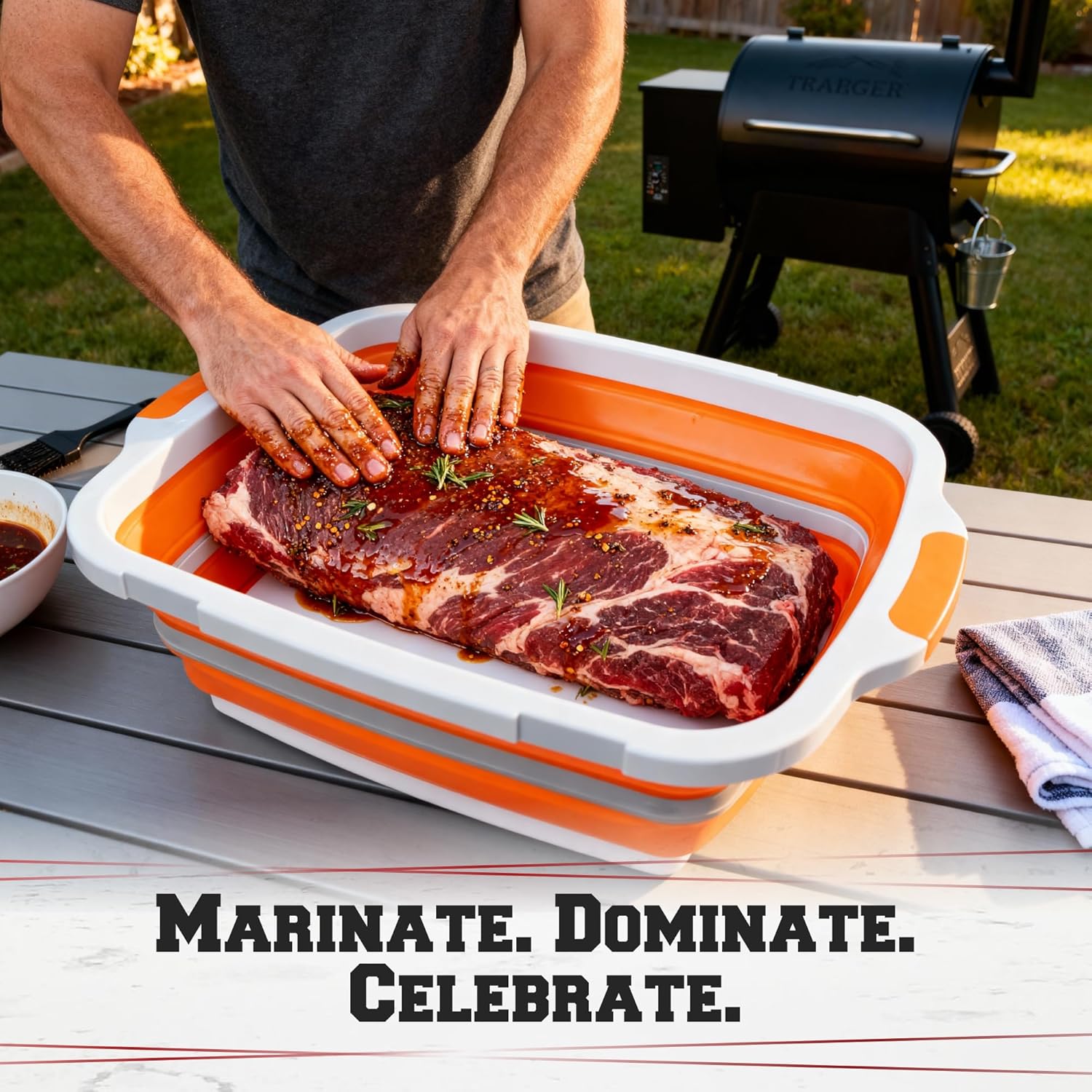 - ALL-IN-ONE BBQ PREP STATION - Marinate, prep, store, and transport cut and serve with ease. This XL BBQ tub (16L Capacity) includes a built-in cutting board & locking lid - perfect backyard accessories for grilling, meat smoking, or tailgating.