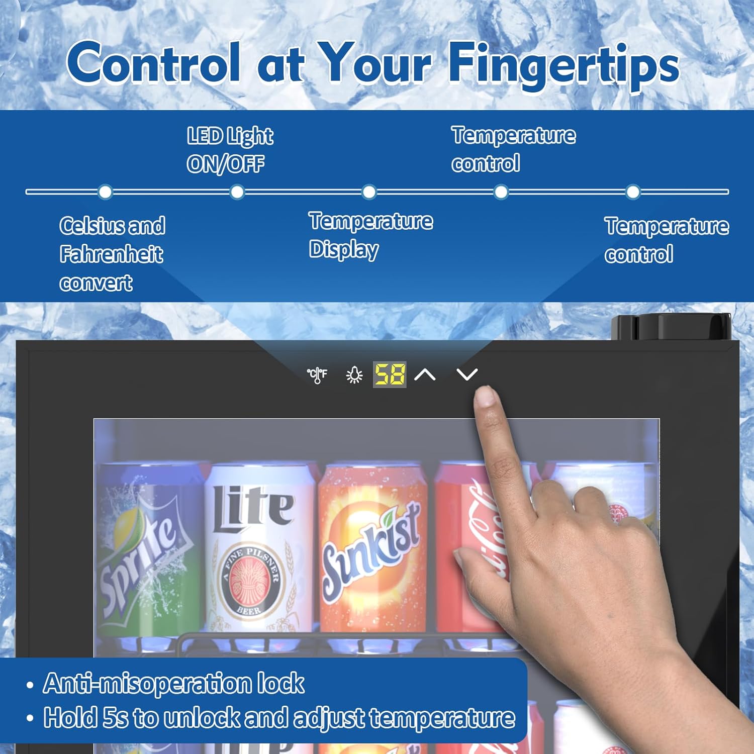 Beverage Refrigerator Cooler, 120 Can/3.2 Cu.Ft Mini Fridge with Glass Door and Electronic Temperature Control for Beer, Wine, Soda, Compact Drink Fridge for Home, Office, Bar