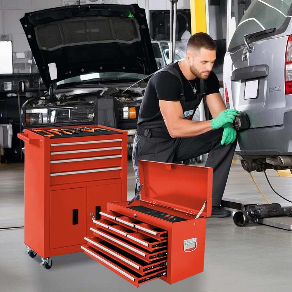 - 2 in 1 Detachable Tool Chest:Our tool chest consists of two parts, a small toolbox and a tool cabinet. In order to facilitate transportation, we have placed the toolbox in the tool cabinet below, please take out the toolbox after receiving the goods. During use, you can use the two together or separately.