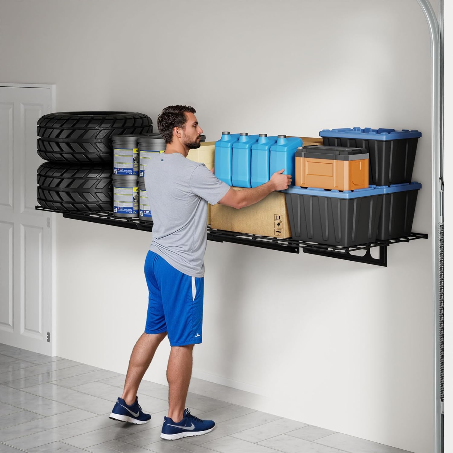 FLEXIMOUNTS 2x6ft Garage Shelving Wall-Mounted, 1-Pack Heavy-Duty Wall Shelving, Holds Up to 400 lbs, Garage Storage Rack for Organization & Storage Bins, Black, Classic Series