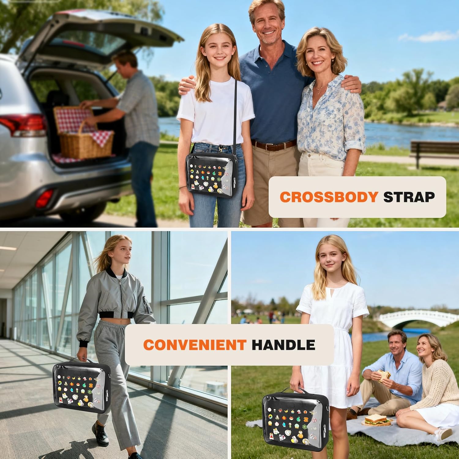 - ⭐ Portable Travel Companion — Designed for collectors on the go, this bag features both a sturdy handle and an adjustable shoulder strap. It's the ideal hands-free pin bag for carrying your collection to conventions or trading events.