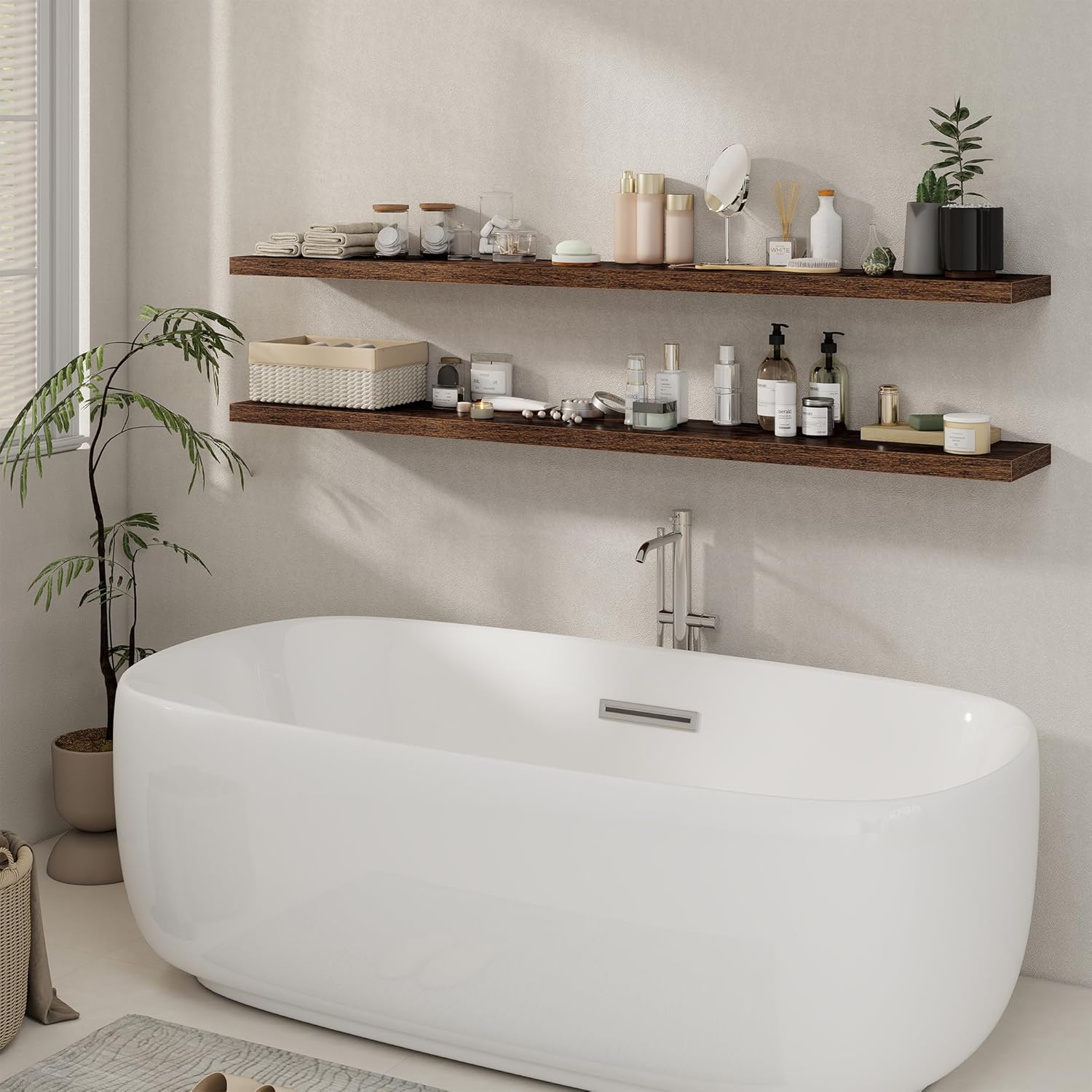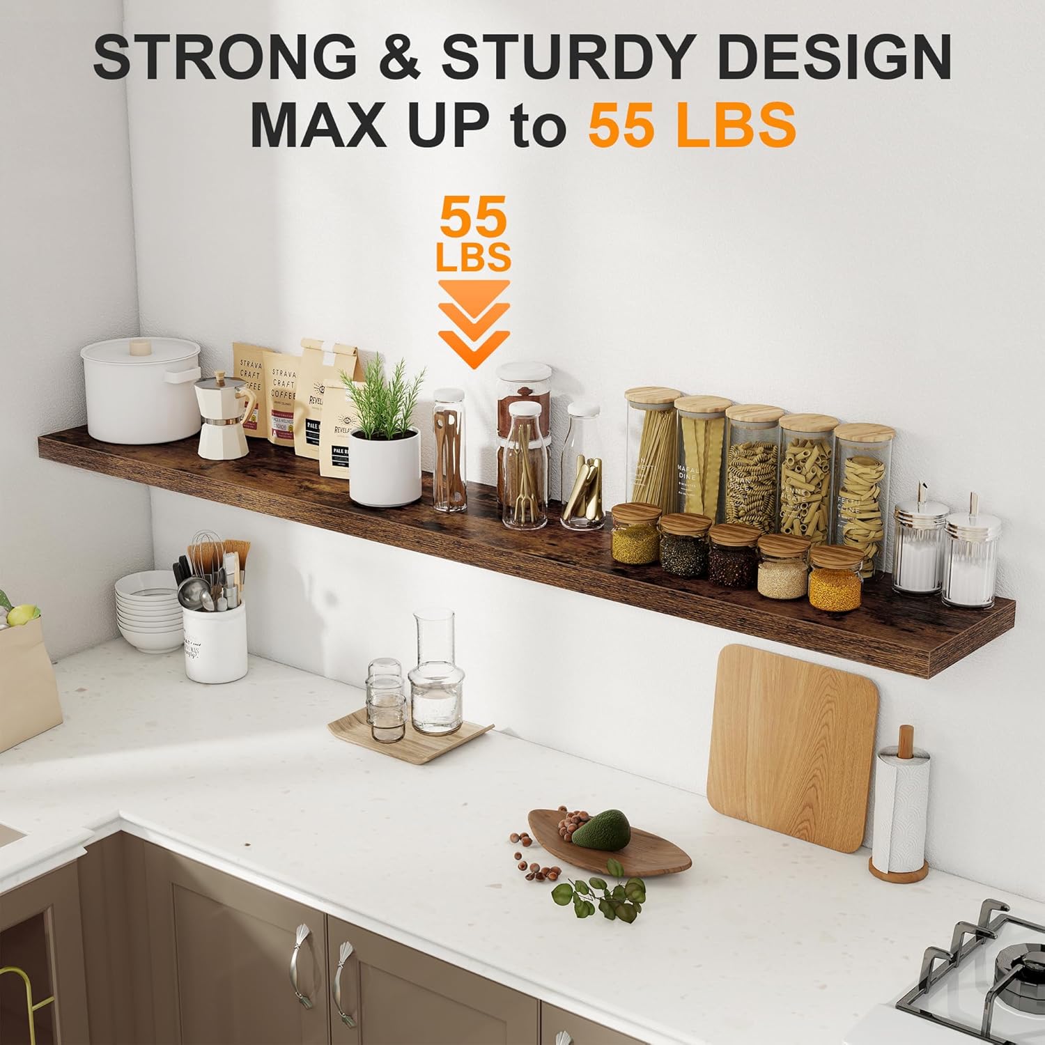 72 Inch Floating Shelves 2 Pack, 8 Inch Deep Floating Shelf Wall Mounted, Large Shelves with Invisible Bracket for Books, Rustic Wood Wall Shelf for Bedroom, Kitchen, Living Room, Rustic Brown