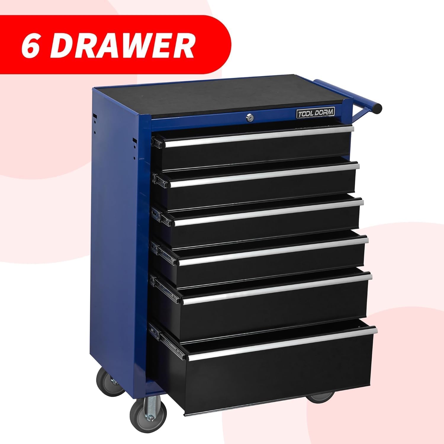 6-Drawer Rolling Tool Chest with Locking Wheels & Drawers, 13" D x 24.2" W x 36.6" H Mobile Tool Storage Cabinet, Heavy-Duty Garage Organizer w/Ergonomic Handle