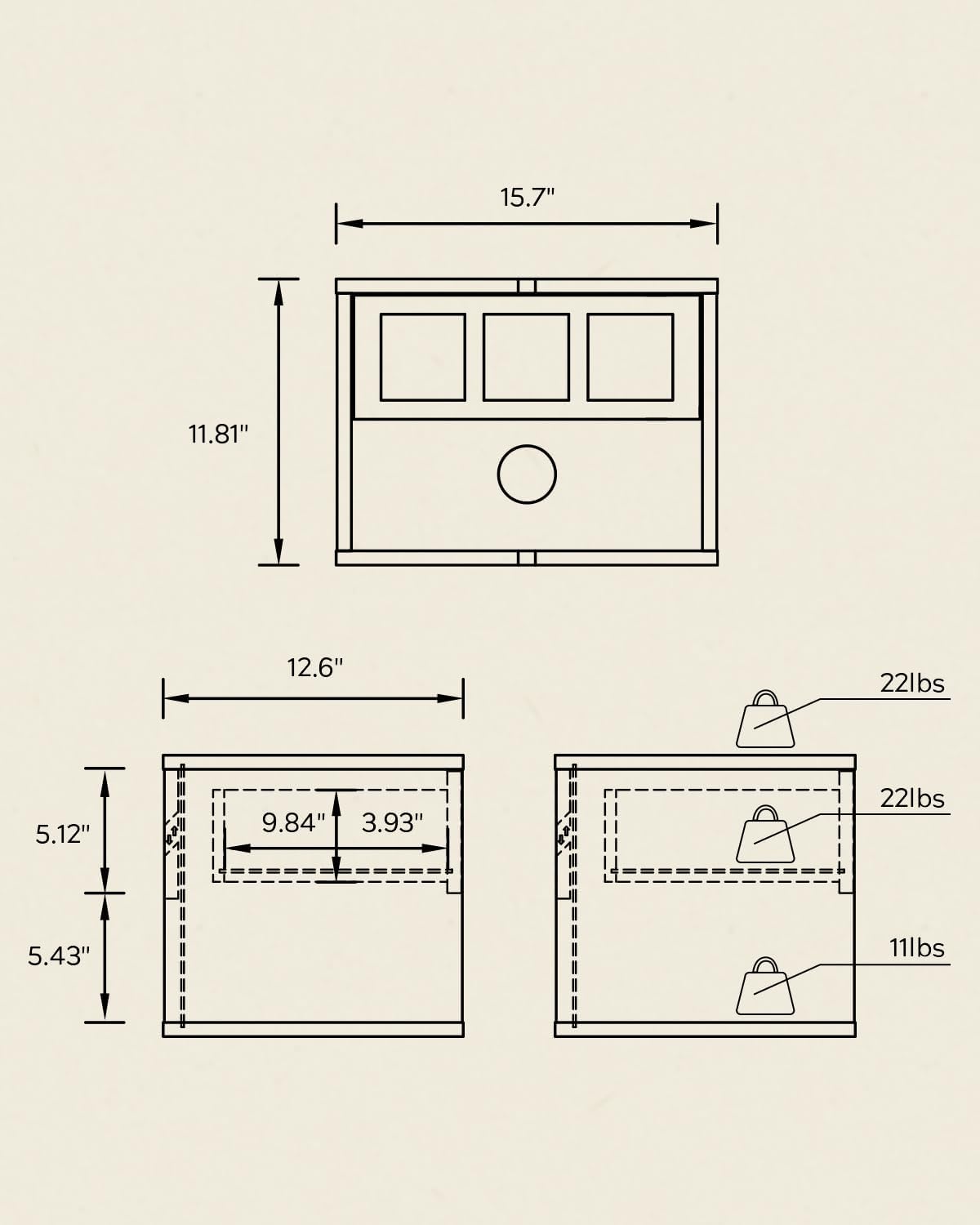 - Space Saving: The dimension for this sturdy bedside shelf is 12.6''D*15.7''W*11.81''H, which fits perfectly in tight spaces. The hanging design gives the flexibility to place it at any height and saves valuable floor space