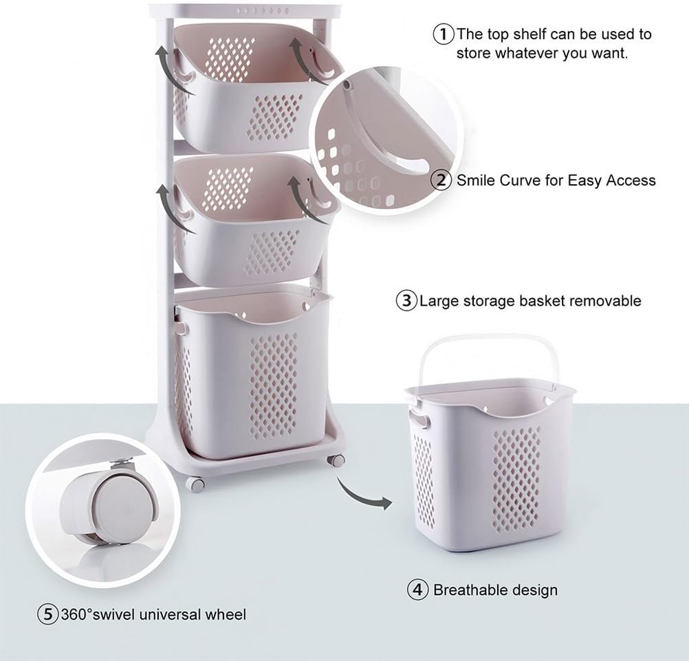 - 4-Layer Large Capacity: Features 3 top baskets (14.96"×11"×7.87") and 1 deep bottom basket (14.96"×11"×13.78") to store and sort clothes, towels, toys, or bathroom essentials with ease.