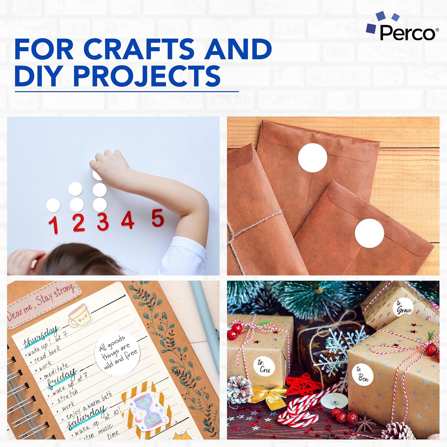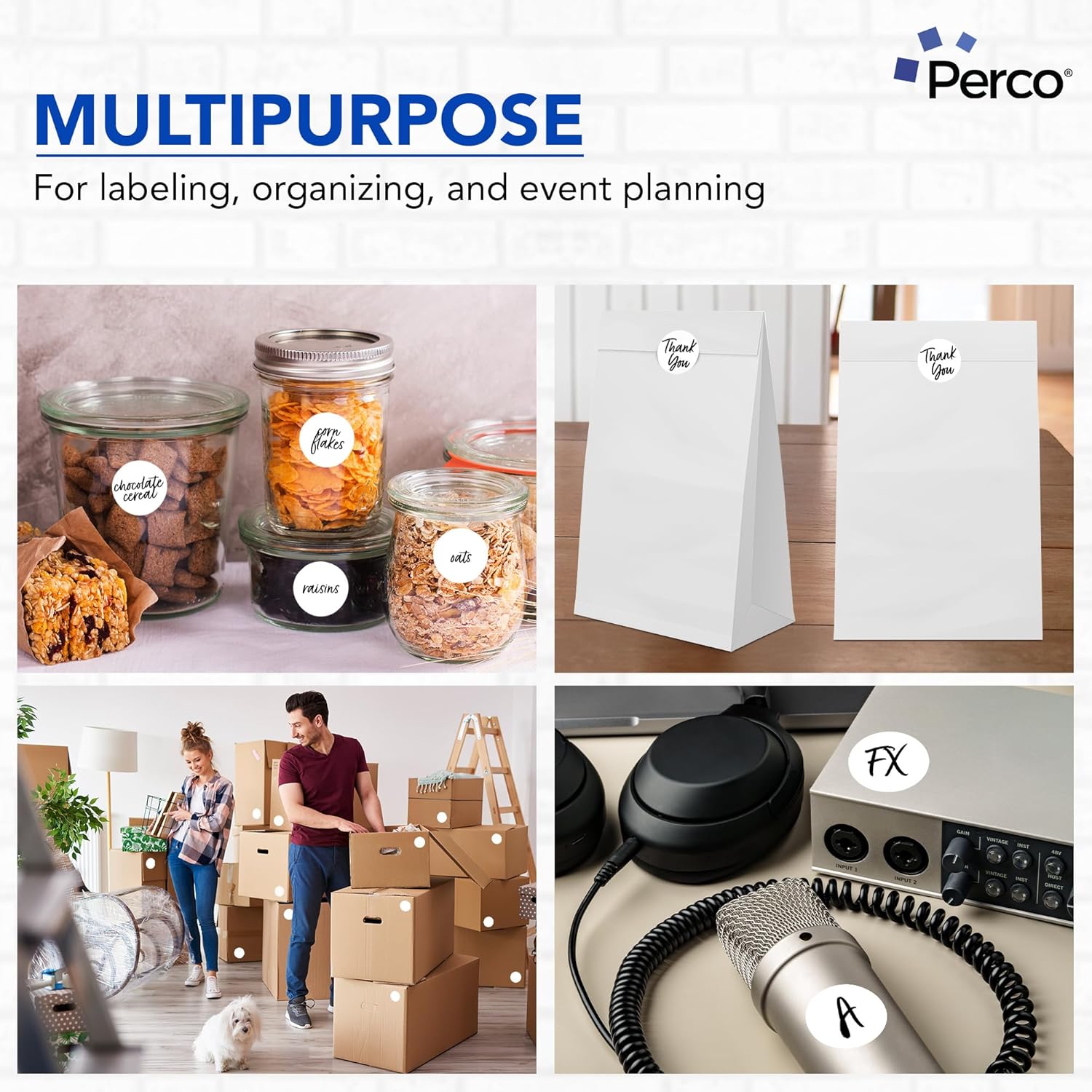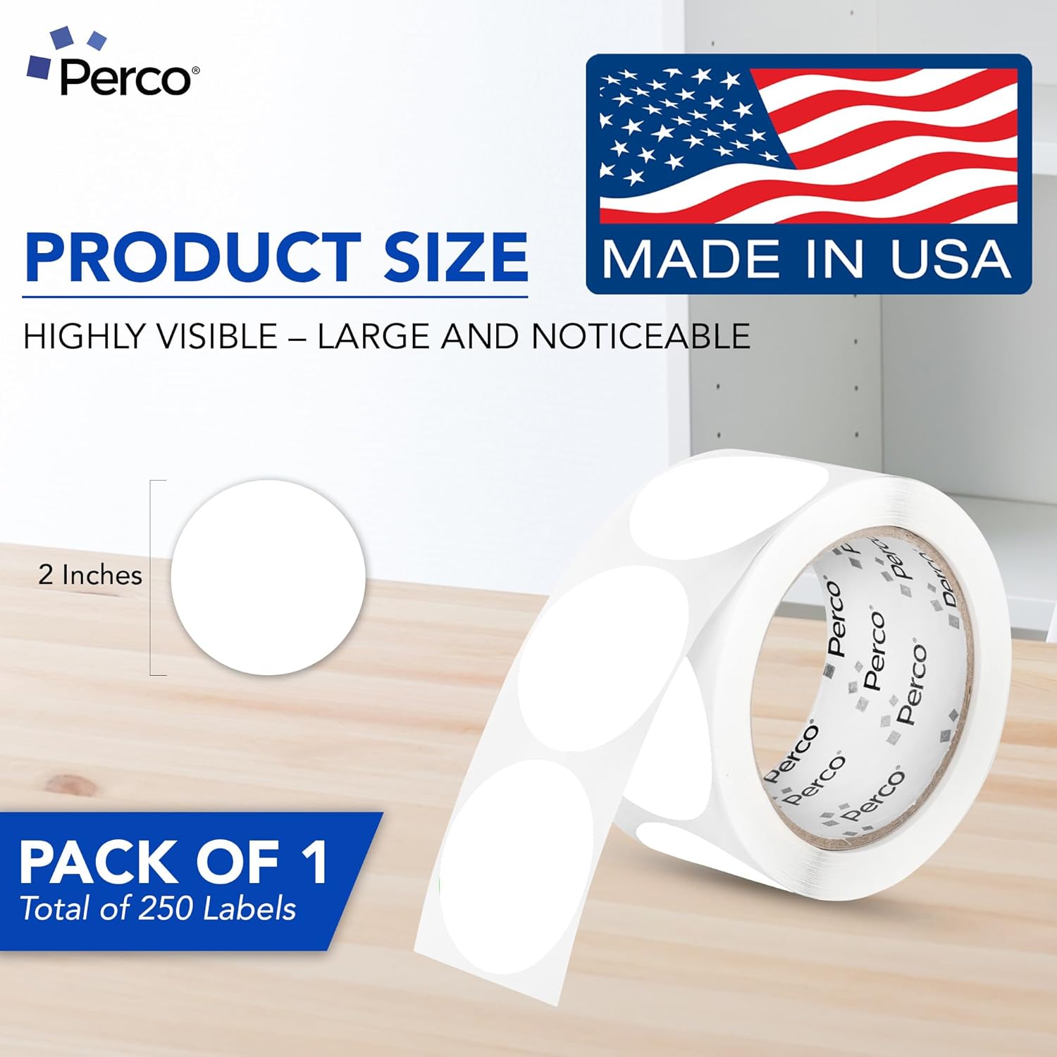 Perco White 2-Inch Perforated Circle Dot Sticker Labels — 250 Round Stickers Per Roll — with Permanent Adhesive for Organizing, Color Coding, Bin Labeling, Packaging Alerts — Made in USA