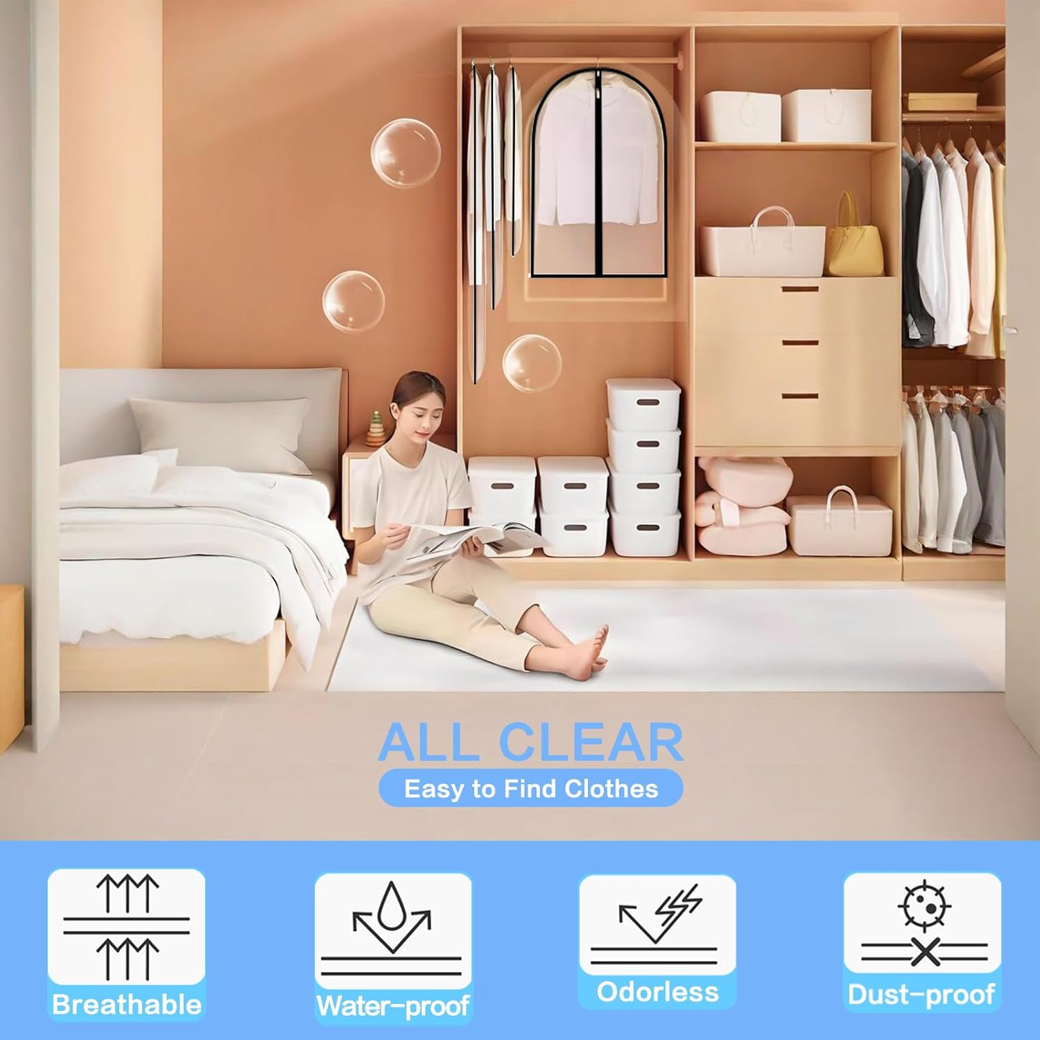 - 【All Clear】– Full clear PEVA material helps you see what's in each hanging garment bag for closet storage easily and pick out the clothes you are looking for without any fuss. The garment storage bags for hanging clothes is washable and durable. Still like new after multiple uses and washing.