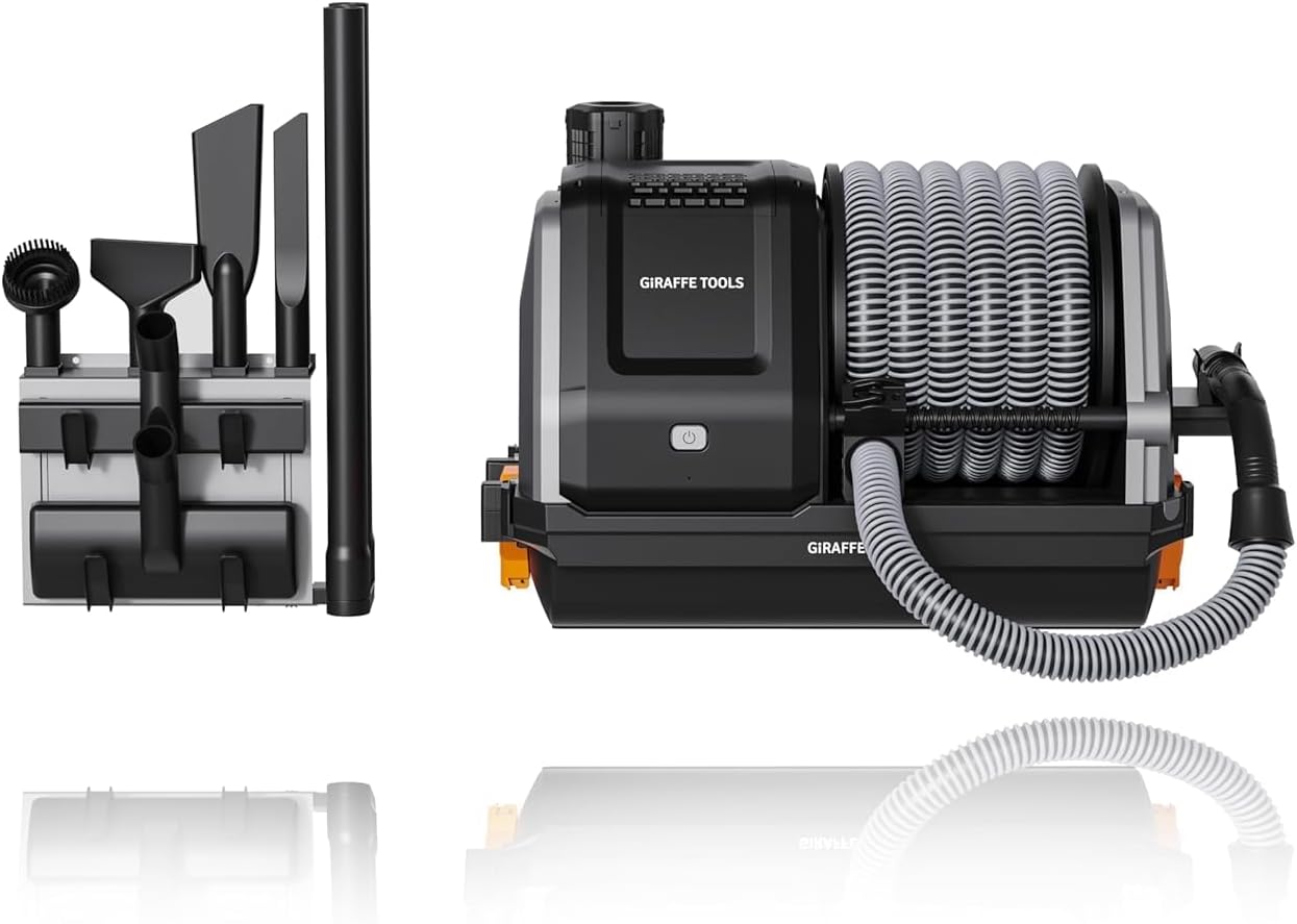 Giraffe Tools Grandstorm Retractable Vacuum Cleaner Wall-Mounted, Shop Wet Dry Vacuum Cleaner with 6 Nozzles for Car Detailing Remote Control Garage Vacuum, Grey