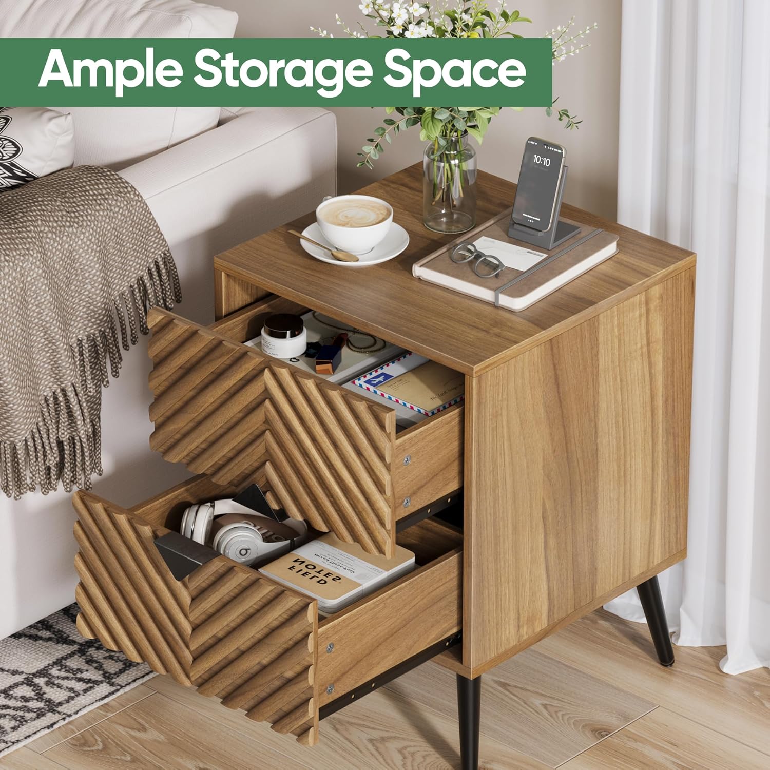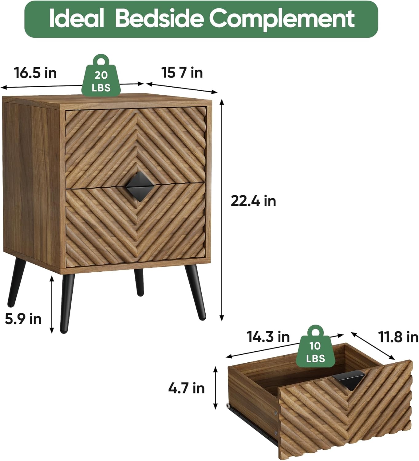- STURDY & DURABLE CONSTRUCTION - Crafted from high-quality MDF with a waterproof, easy-to-clean surface, this walnut nightstand is built for longevity. The nightstand with drawers sturdy metal legs ensure stability and feature protective pads to prevent floor scratches.