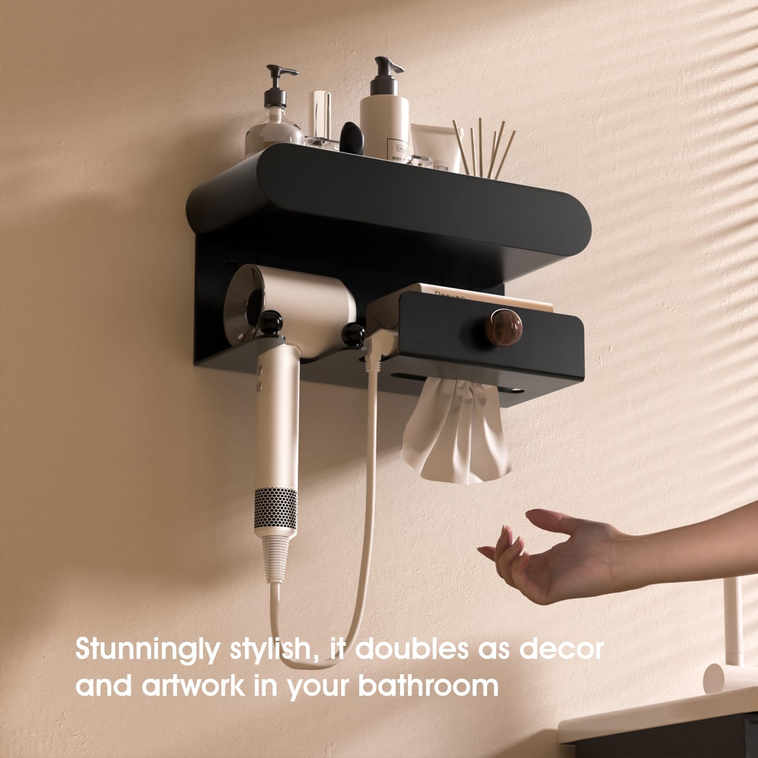 - VERSATILE MOUNTING: Wall-mounted hair dryer holder designed for secure storage and easy access in bathrooms and dressing areas